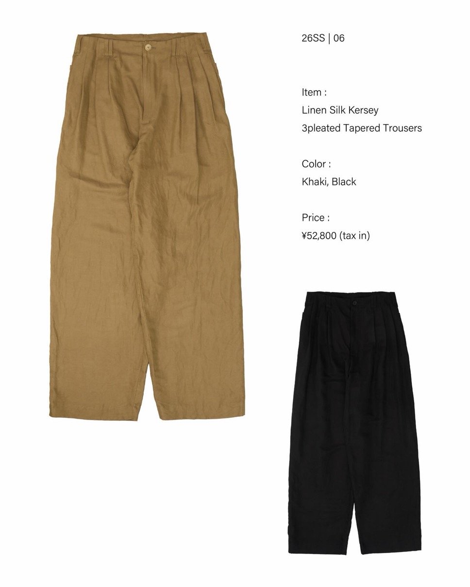 Linen Silk Kersey 3pleated Tapered Trousers