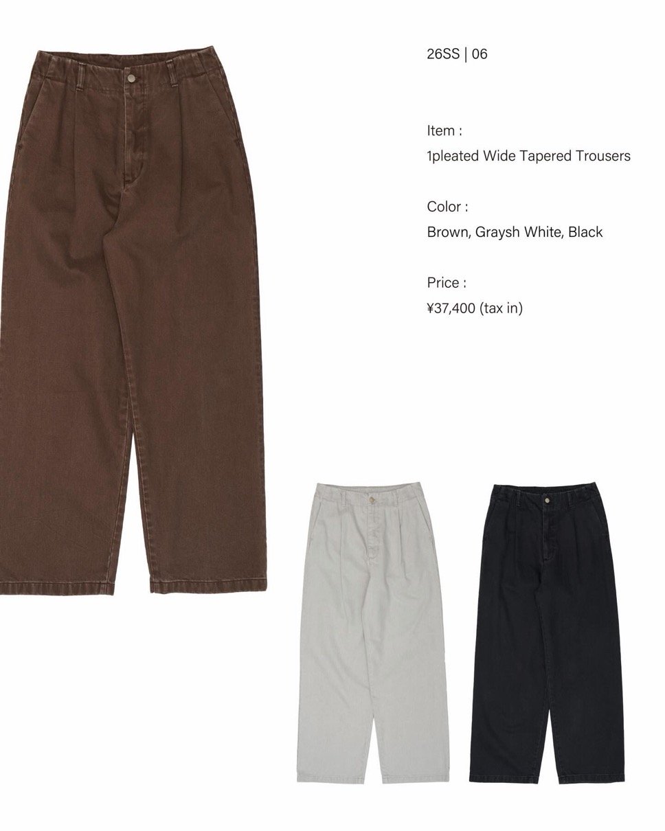 Suface Dyed Denim 1pleated Wide Tapered Trousers
