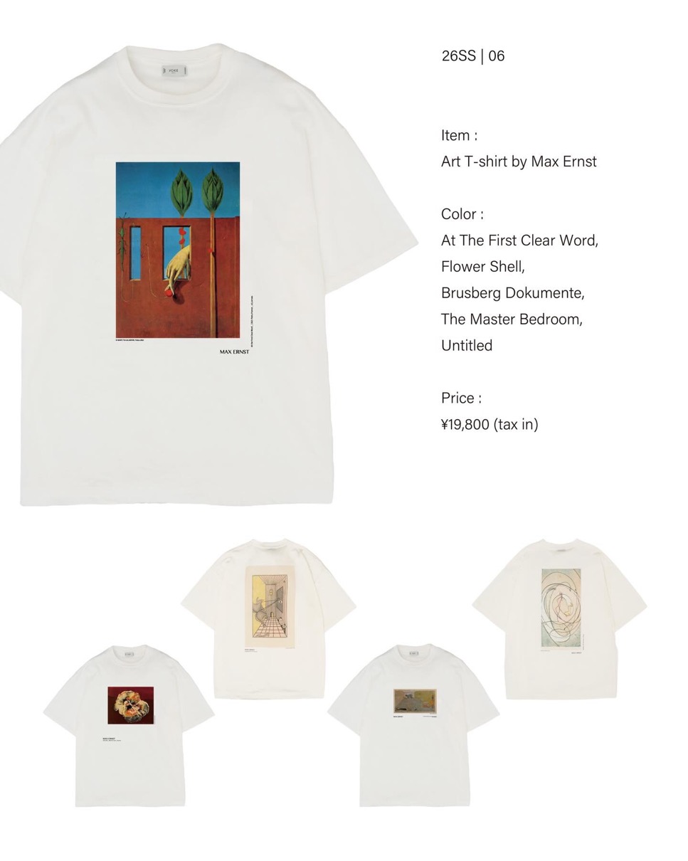 半袖アイテムも今デリバリーでは大量に入荷。毎シーズン好評の刺繍Tシャツ、プリントTシャツに加え、26SSシーズンテーマ“マックスエルンスト”オフィシャルから許可をもらったプリントTシャツを展開。