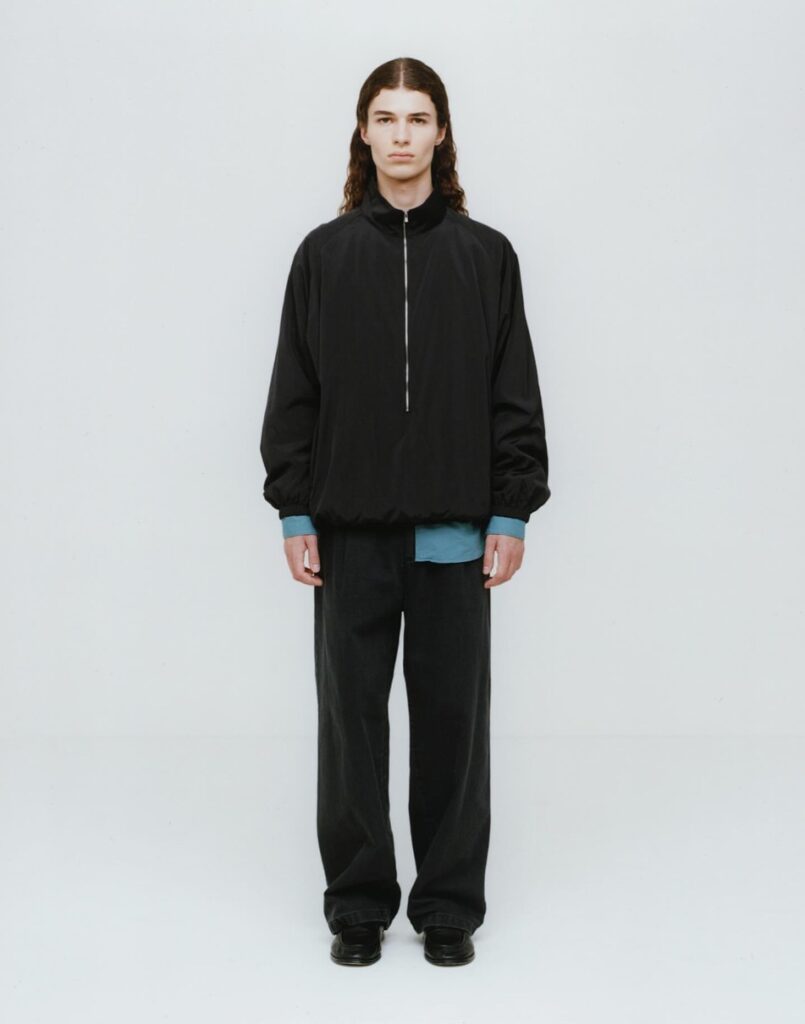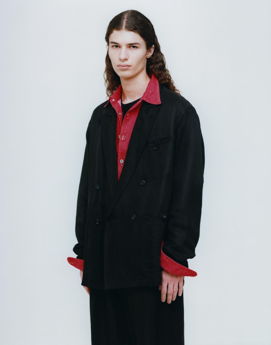 今回は、夏向けのセットアップとしてリネンシルク素材が新たに登場。シルクの光沢、ぬめり感にリネンの肌離れの良さが加わった上質素材を使用したゆったり目のダブルジャケット、スキッパーシャツ、3タックトラウザーズの他、中白デニムを使ったヴィンテージあるパンツは春先に丁度良い質感と色味に。