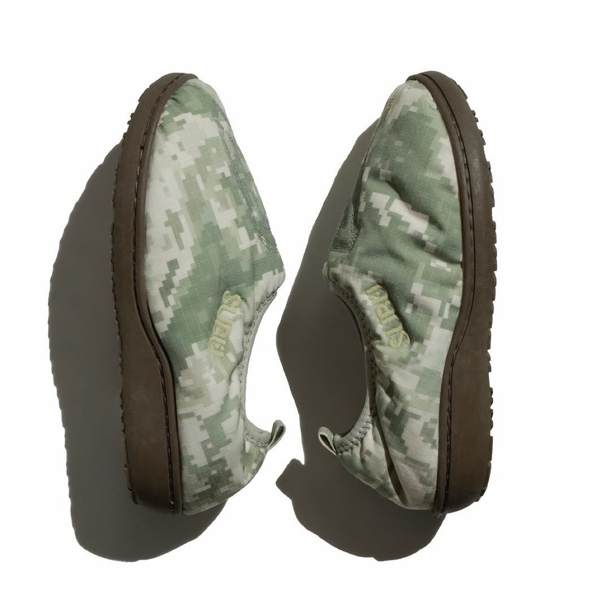 もう1型は歩行性をアップデートさせたオリジナルインソール「HEXMAX」が採用された、カカト付きのSUBUの最新モデル「VAMP」を採用し、世界地図をデジタルカモに落とし込んだ柄をメインに、アッパー部分にYouthQuakeの頭文字であるYQをリフレクター素材の糸を使用し大胆に刺繍したデザインとなっている。シューズを購入した方にはSUBUの収納は勿論、日常で使える特製ヘルメットバッグも付属する。